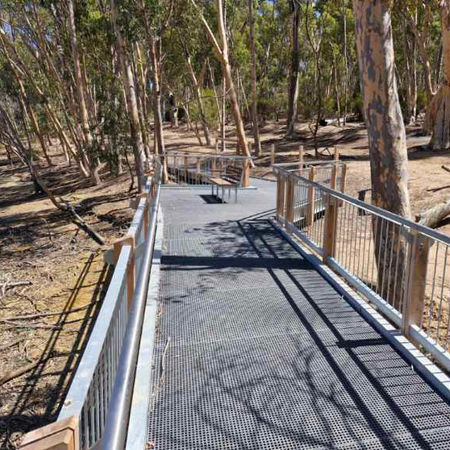 The project focused on enhancing public access, safety, and experience through the delivery of a universal access (Class 1) loop trail around Playford Lake. Works included the realignment and refurbishment of existing trails, along with the construction of new stairs, boardwalks, bridges, and viewing platforms. The project also involved the demolition of outdated infrastructure, streamlining the park’s layout while preserving its natural appeal.